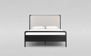 With its sleek lines and minimalist silhouette, this Bed Frame offers a contemporary design with timeless appeal. The solid teak wood construction ensures sturdy craftsmanship, providing lasting stability and support for a comfortable night’s sleep. The upholstered headboard combines luxury and practicality, offering both style and comfort for those relaxing moments before bed.